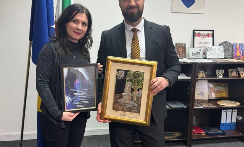 Tanisa Cikotić, dirigentica Kamernog simfonijskog orkestra Zenica, uručila je danas zahvalnicu ministru za obrazovanje, nauku, kulturu i sport Zeničko-dobojskog kantona, Mirzi Mušiji, za podršku realizaciji muzičkog projekta „EX YU Rock & Movie Music Performance“.