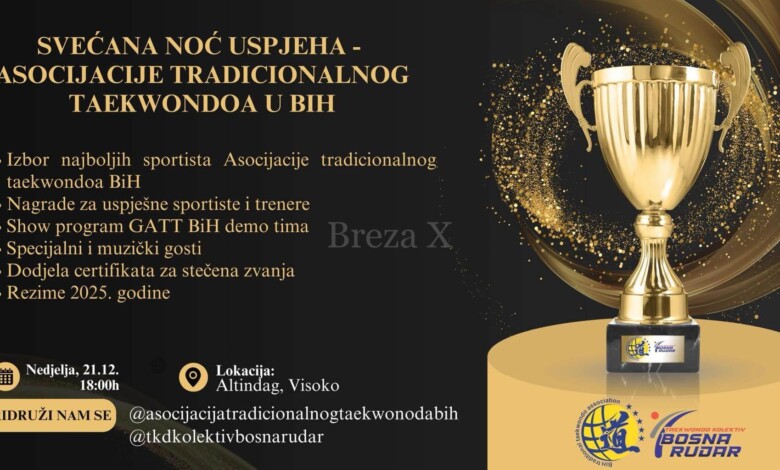 U nedjelju, 21. decembra u 18:00 sati, u Altindagu (Visoko) bit će održana manifestacija koja svake godine okuplja najbolje sportiste, trenere i ljubitelje tradicionalnog taekwondoa u Bosni i Hercegovini – “Svečana noć uspjeha”, u organizaciji Asocijacije tradicionalnog taekwondoa BiH.