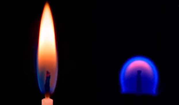 21. Na fotografiji ispod se vidi kako vatra gori na Zemlji i kako gori u okolini bez gravitacije, kao na svemirskoj postaji Mir.