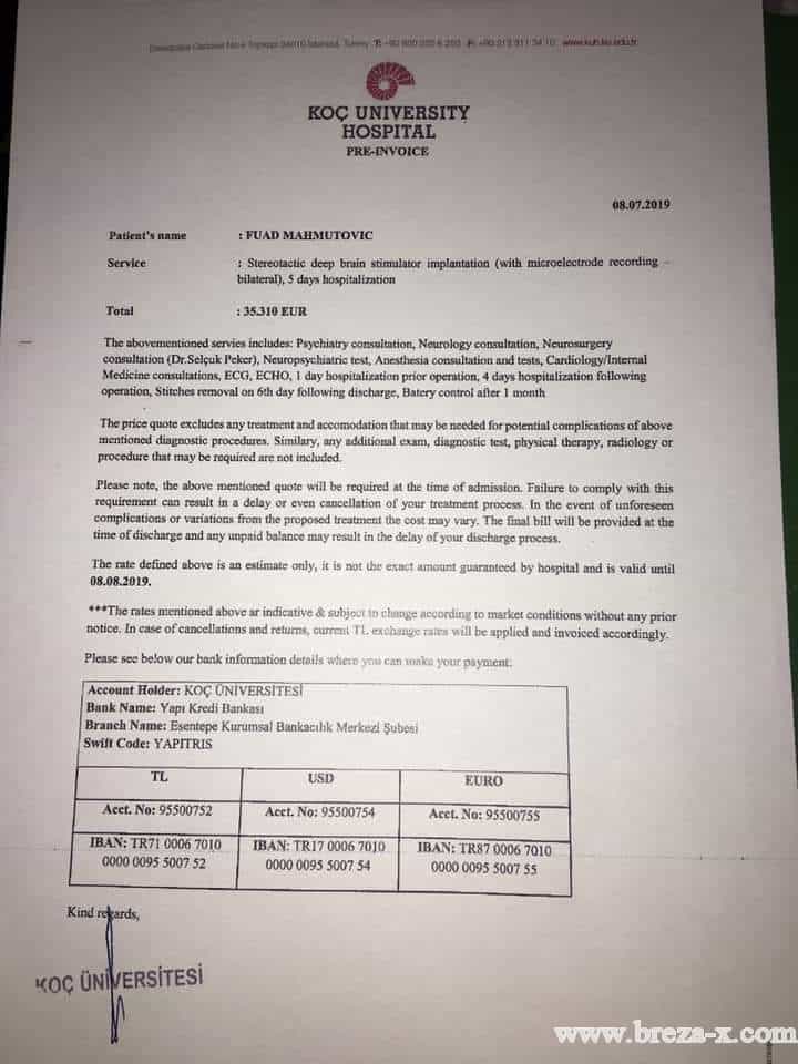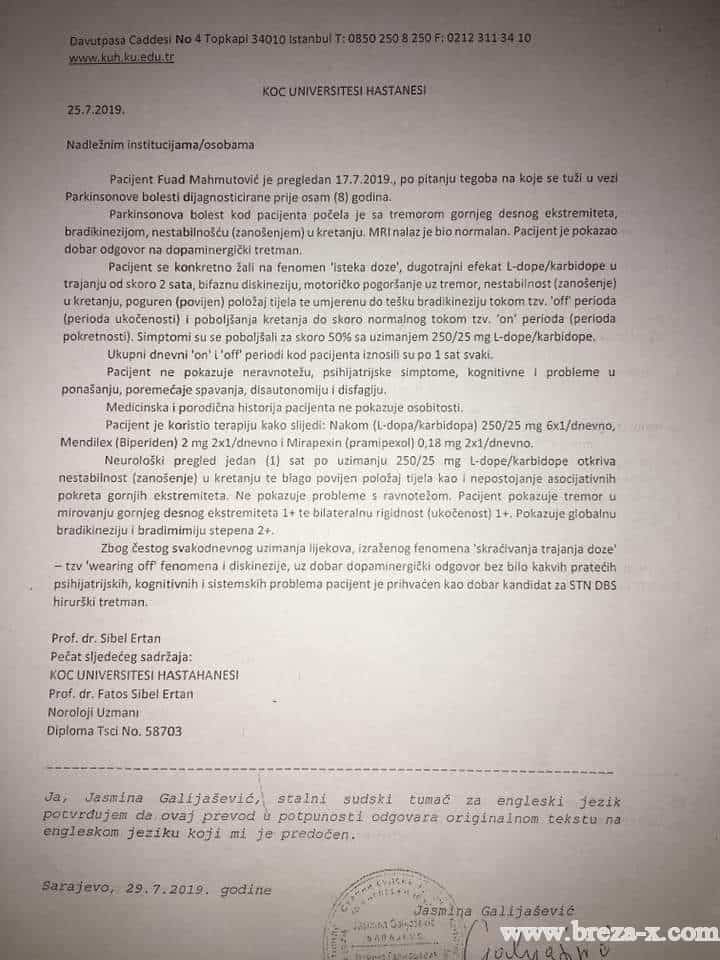 Detalji sa nalazima, dijagnozom, preporukama ljekara iz Turske su u nastavku.