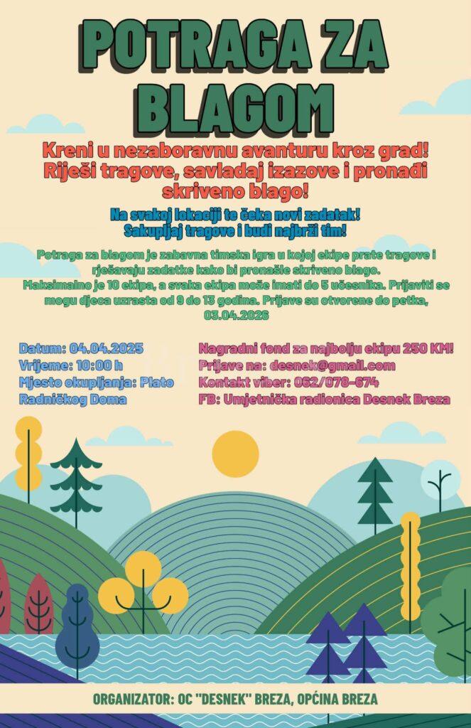 U organizaciji Omladinskog centra “Desnek”, uz podršku Općine Breza, naš grad uskoro će biti domaćin jedinstvene i zabavne aktivnosti za djecu – Potrage za blagom, koja obećava dan pun uzbuđenja, timskog duha i nezaboravne avanture.