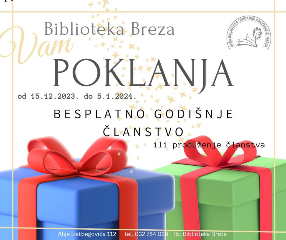 Idući u susret Novoj godini Opća biblioteka „Muhamed Kantardžić“ Breza daruje vam besplatnu godišnju članarinu!