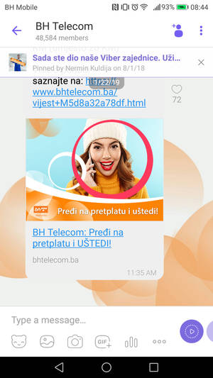 Informišemo korisnike da BH Telecom sva obavještenja o uslugama i akcijama dostavlja putem zvaničnog  profila BH Telecom-a na Viberu  i ne komunicira direktno na ovom kanalu sa pojedinačnim korisnicima niti od korisnika traži korisničke podatke.