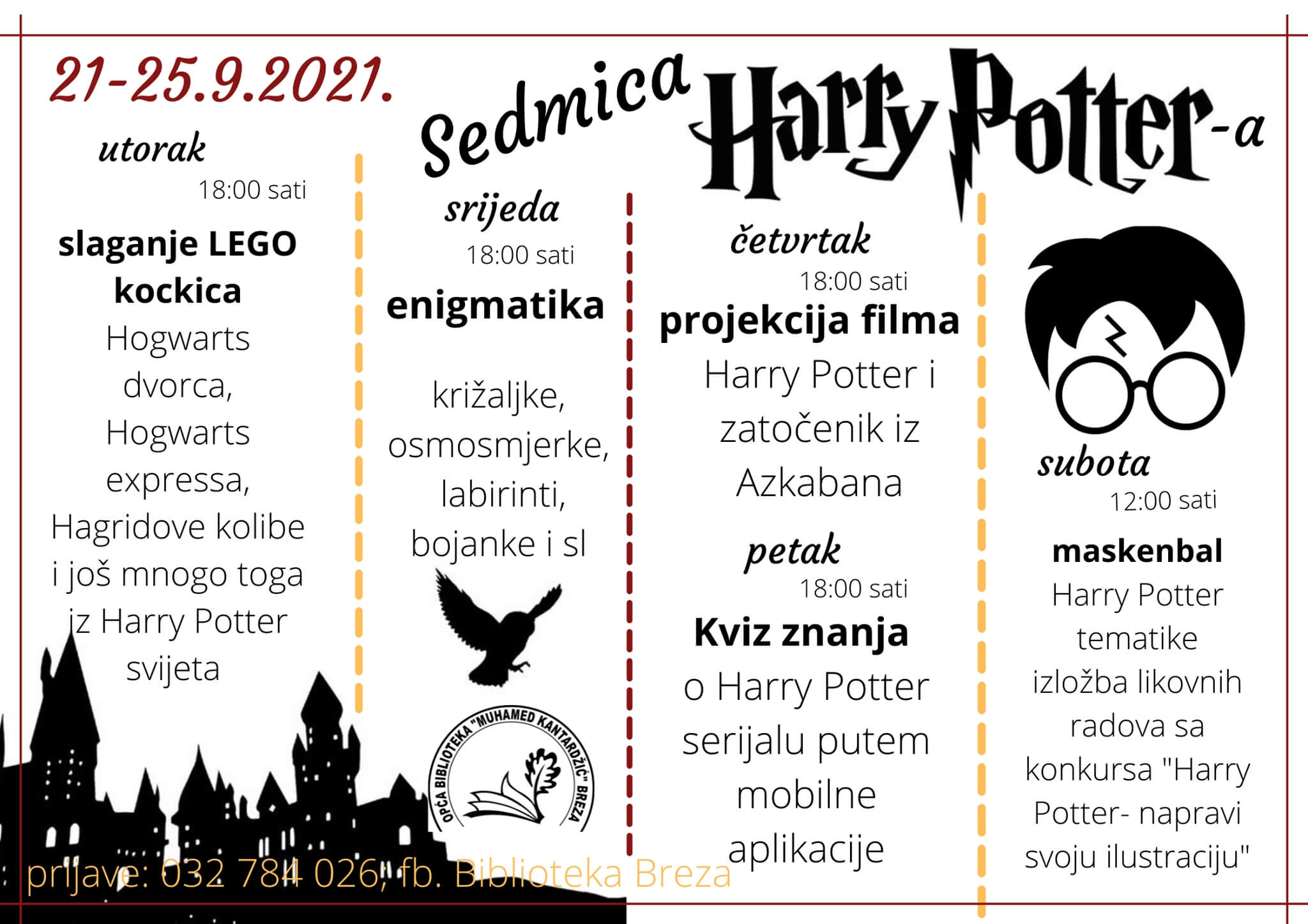 Serijal knjiga o Harry Potter-u jedan je od najprodavanijih romana za djecu i tinejdžere. Zbog toga je Biblioteka Breza, u periodu od 21. do 25. septembra 2021. godine, za sve fanove ovog dječaka-čarobnjaka i čudesnog Hogwarts svijet magije organizovala „Sedmicu Harry Potter-a“.