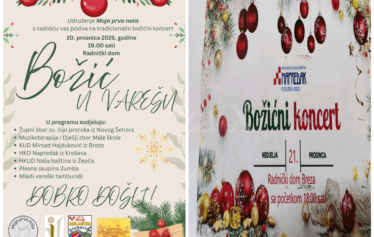 Kako nam se bliže praznici, raste i praznična atmosfera koju će dodatno uljepšati bogat kulturno-muzički program u organizaciji vrijednih članova lokalnih udruženja. Tradicionalni božićni koncerti u Varešu i Brezi zaokružit će ovogodišnje nastupe i publici donijeti večeri ispunjene radošću, pjesmom i zajedništvom.