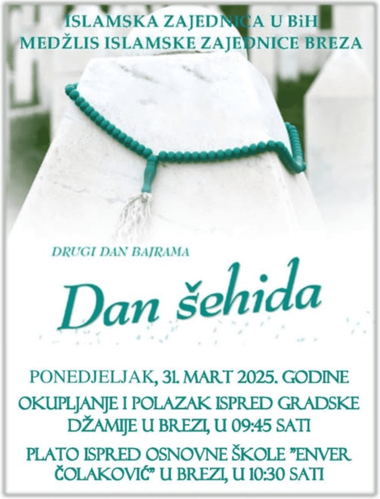 Drugi dan ramazanskog bajrama u Bosni i Hercegovini se obilježava Dan šehida, tako će biti obilježeno i u Brezi. Tim povodom, brojne porodice, rodbina, predstavnici izvršne i zakonodavne vlasti će obići mezarja i odati počast šehidima i poginulim borcima.