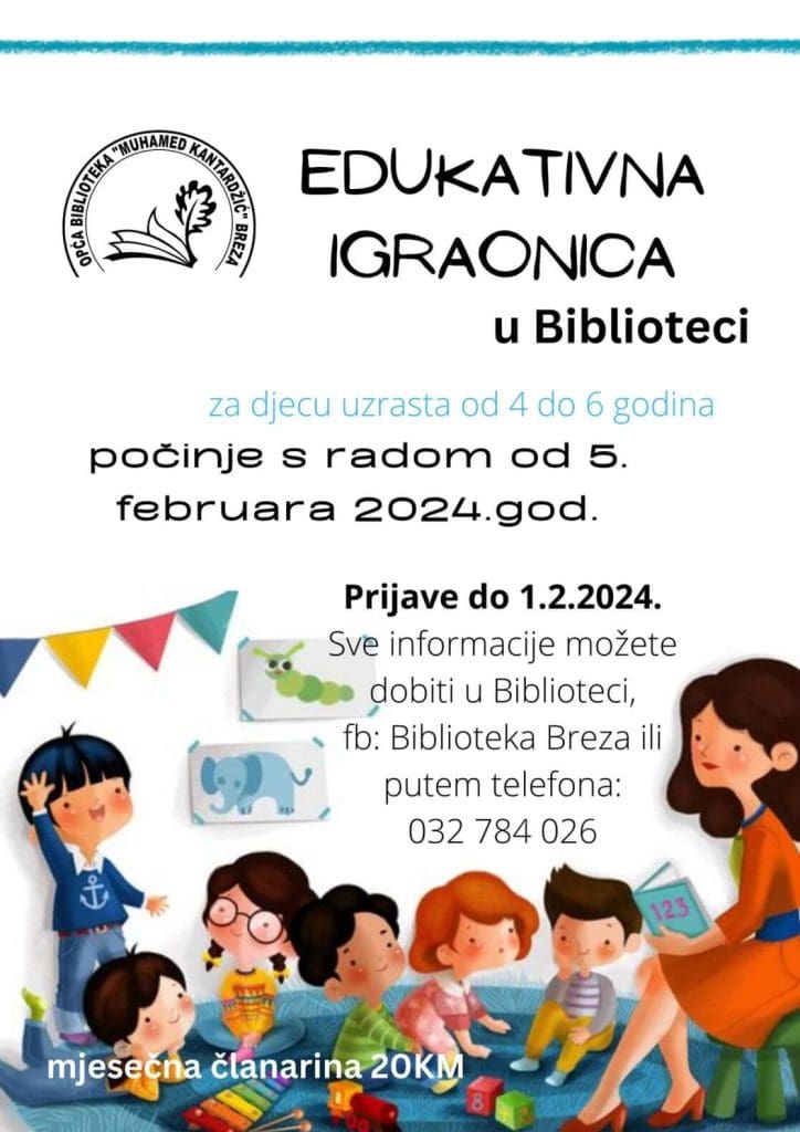 Opća biblioteka “Muhamed Kantardžić” Breza od 5. februara nastavlja organizovati edukativne igraonice za djecu uzrasta od 4 do 6 godina.