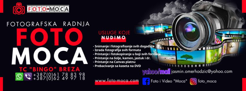 Fotografska radnja Foto & Video “Moca” se nalazi u tržnom centru “Bingo” Breza i vrši usluge fotografisanja i snimanja, izrada digitalnih fotografija sa svih medija, skeniranje fotografija i fotokopiranje, izrada vizitki, printanje kalendara i printanje u koloru na velikim formatima, printanje na kamenu, puzlama, šoljama, satu i jastuku.