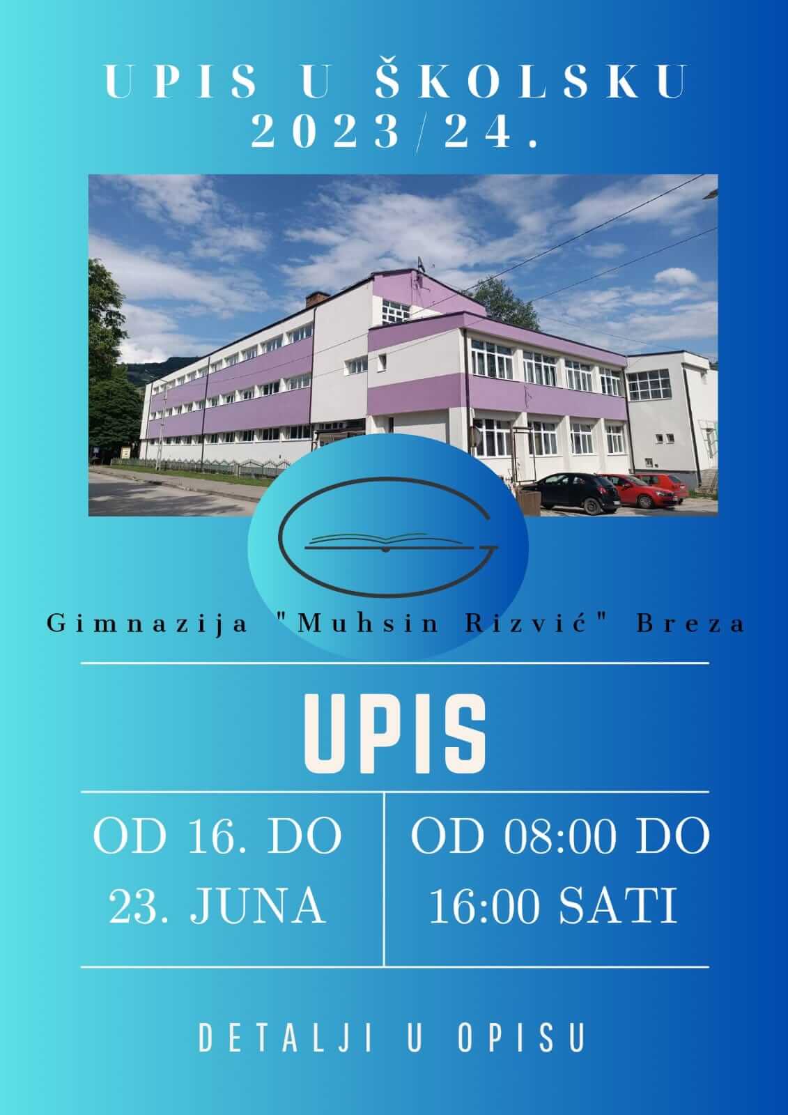 Gimnazija “Muhsin Rizvić” Breza: Upis u prvi razred za školsku 2023/2024.