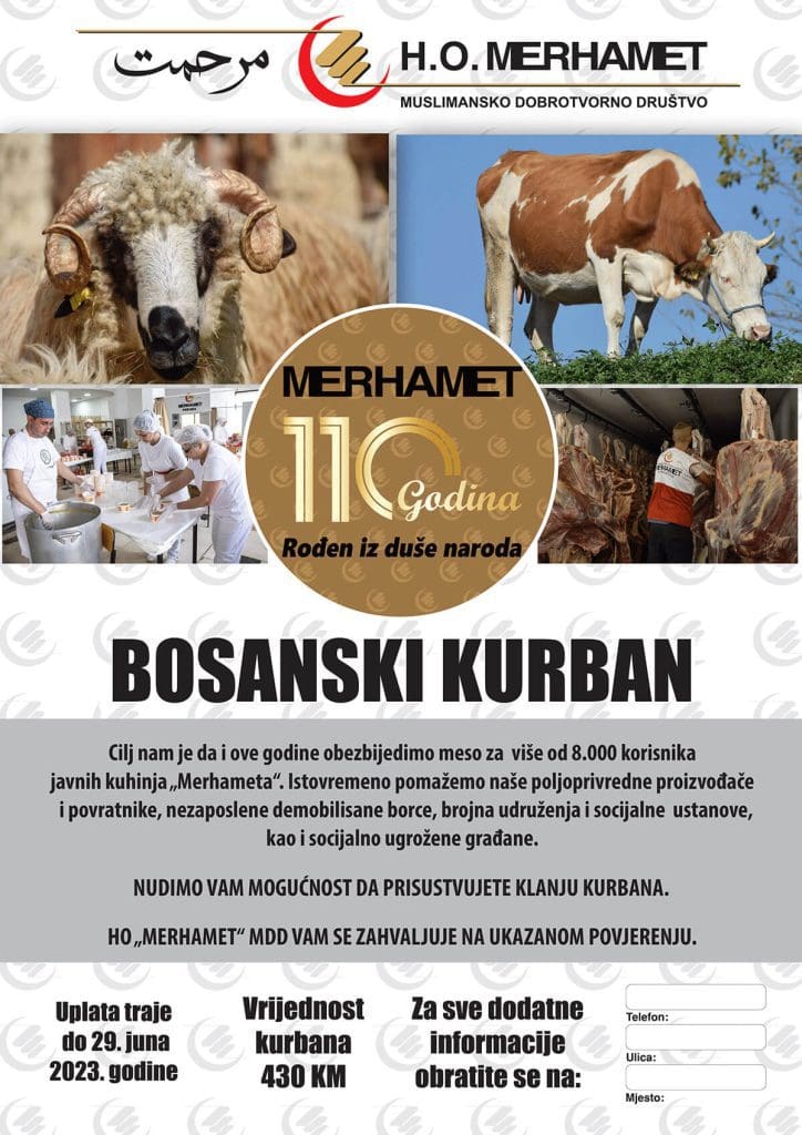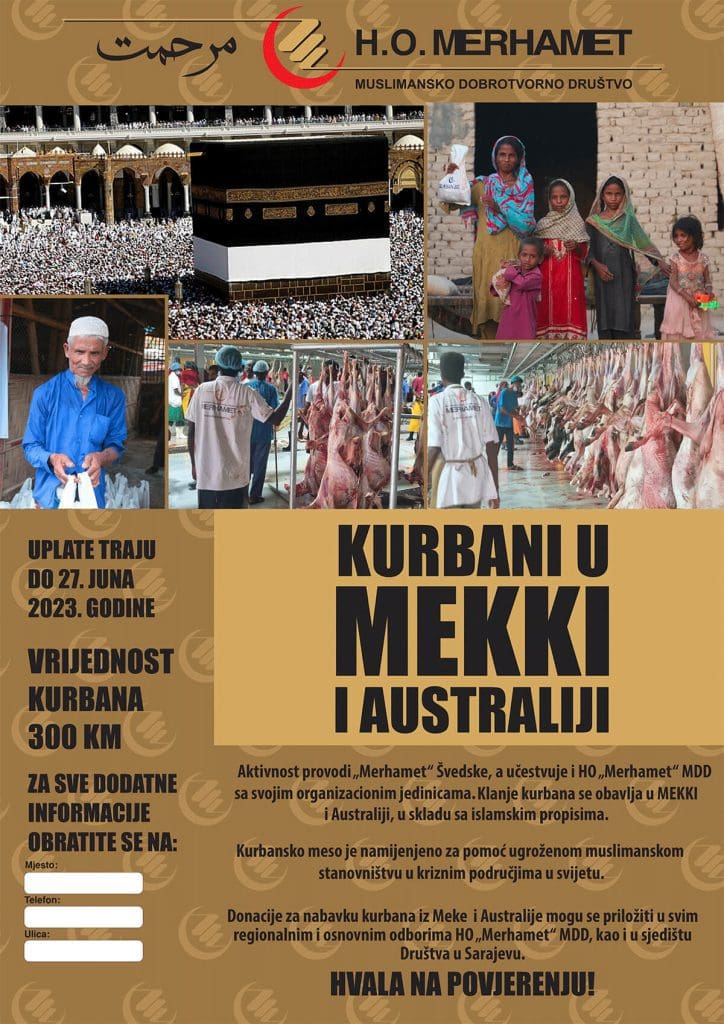 – „Merhamet“ će primati i donacije za nabavku kurbana iz MEKE i AUSTRALIJE koju provodi „Merhamet“ Švedske, a u akciji učestvuje i HO – „Merhamet“ MDD sa svojim organizacionim jedinicama.
