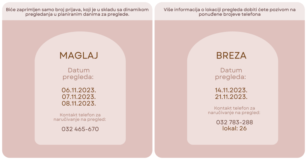 VIŠE INFORMACIJA o terminima, i lokacijama pregleda dobiti ćete pozivom na navedene telefonske brojeve –
