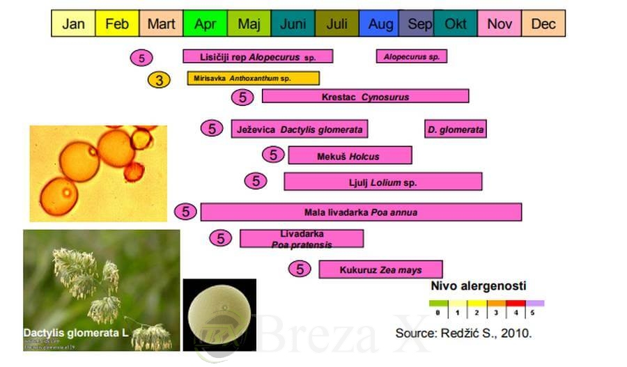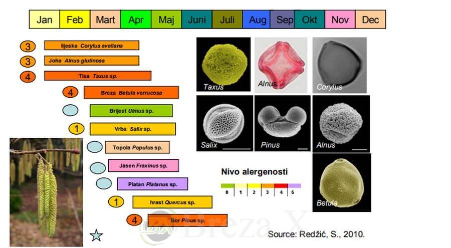 Prva je “drvenaste biljne vrste” koje polen prema polenskom kalendaru otpuštaju već od kraja januara do početka maja i koje su prisutne na cijelom području Zeničko-dobojskog kantona, ponajviše u brdskom i brdsko-planinskom dijelu ali i uz riječne tokove. Među njima su lijeska, joha, tise, čempresi, breza, brijest, vrba, topola, jasen, platan, hrast, smrča, omorika, bor, jela, javor, divlji kesten, grab, domaći kesten, bukva, orah, zova i lipa.