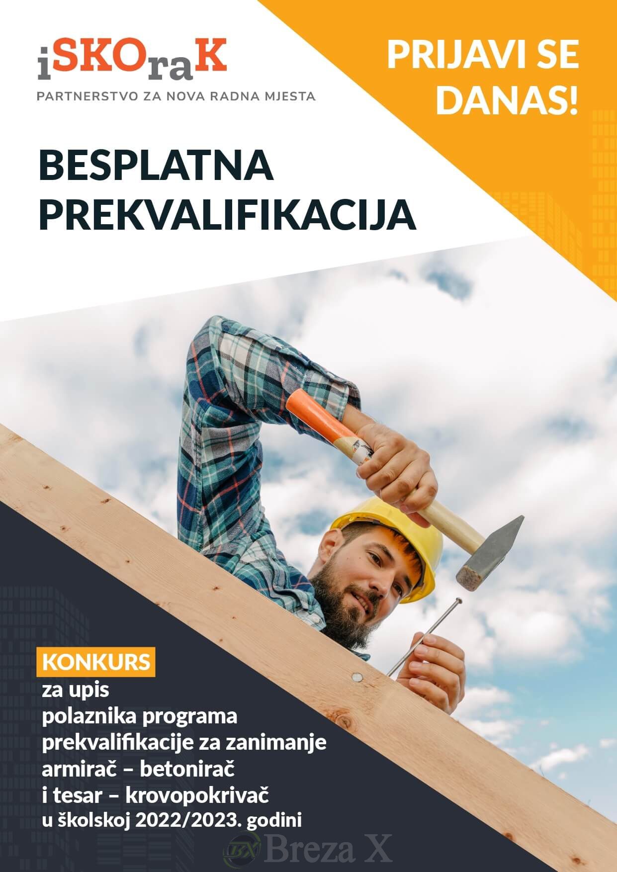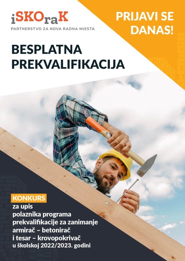 K O N K U R S za upis polaznika programa prekvalifikacije za zanimanje armirač – betonirac i tesar – krovopokrivač u školskoj 2022/2023. godini