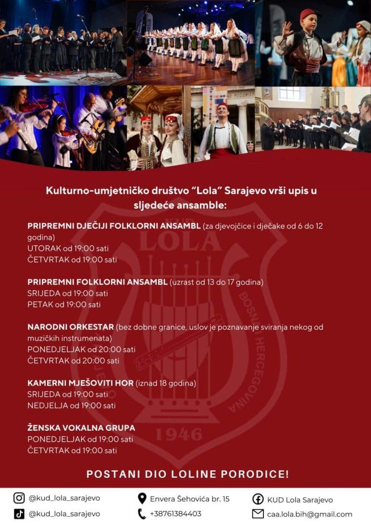 – U “Loli” slavimo raznolikost, učimo djecu o važnosti tolerancije i međusobnog razumijevanja. Pridružite nam se u stvaranju nezaboravnih trenutaka. U “Loli”  uzdižemo kulturu kao dragocjeno naslijeđe koje nas povezuje s našim korijenima, a istovremeno kao most koji spaja generacije i gradi mostove među ljudima. Svaki korak koji napravimo, svaki ples, svaki ton koji odjekuje predstavlja nas u najboljem svjetlu. Zbog toga s poniznošću i strašću održavamo tradiciju živom, dajući joj novi dah u savremenom dobu – zaključuje generalni sekretar KUD-a “Lola”.
