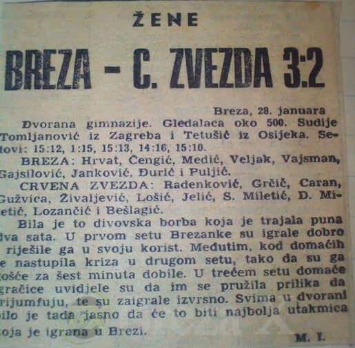 Odbojkaški klub “Breza 1934” Breza, osnovan je 1934. godine, Tokom svog postojanja, ekipe, naročito ženske odbojkaške ekipe juniorki i seniorki su postizale značajne uspjehe poput: