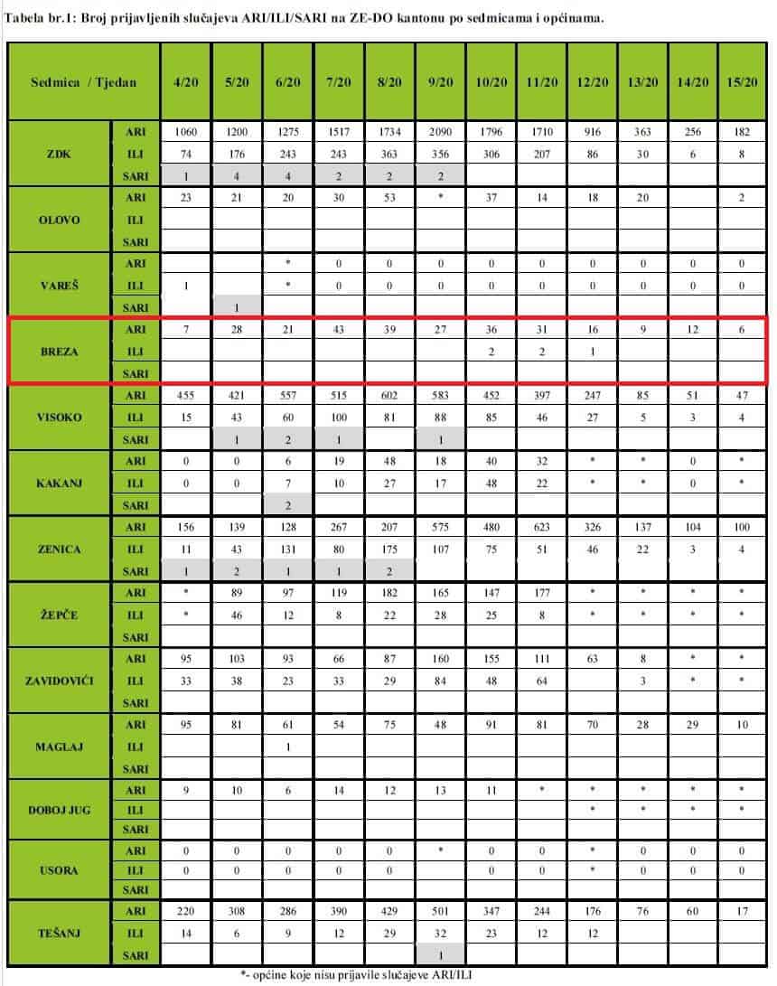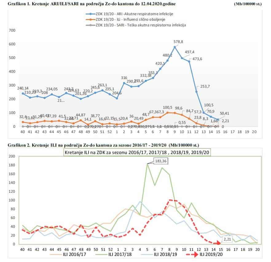 Podaci se sedmično dostavljaju Službi za epidemiologiju, Instituta za zdravlje i sigurnost hrane Zenica, iz zdravstvenih ustanova Zeničko-dobojskog kantona.