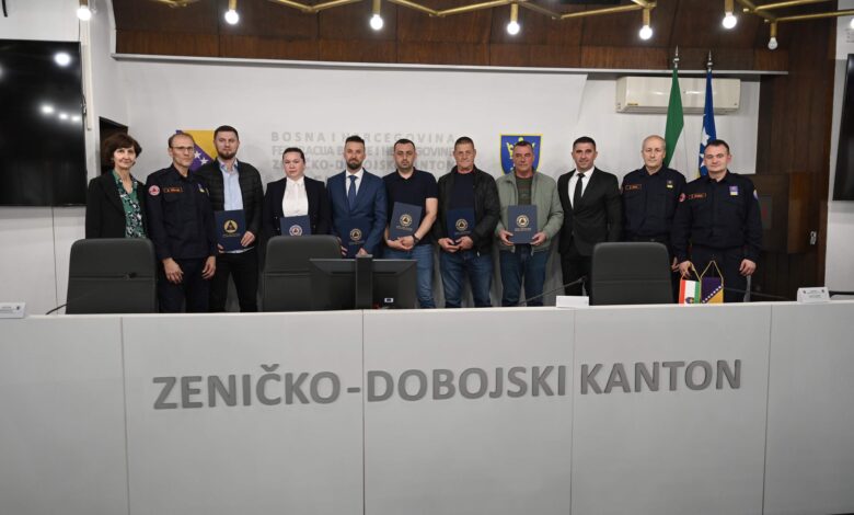 Komandant KŠCZ-a i ministar za prostorno uređenje, promet i komunikacije i zaštitu okoliša Adnan Šabani te načelnik KŠCZ-a i direktor Kantonalne uprave civilne zaštite Džavid Aličić, uručili su “Pisanu pohvalu” vatrogascima Rasimu Mehinoviću i Mehemedu Ruviću, pripadnicima Profesionalne vatrogasne jedinice Maglaj, Ibrahimu Spahiću iz Službe civilne zaštite Općine Vareš te posthumno Niki Tomasu, pripadniku Profesionalne vatrogasne jedinice Žepče.