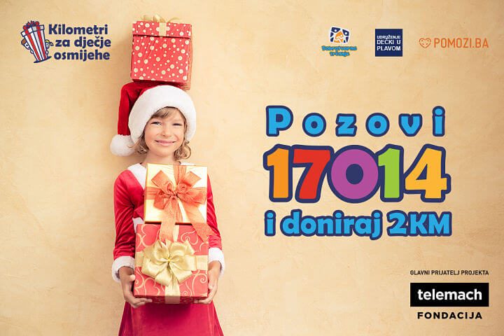 Fondacija Telemach u saradnji sa Udruženjem “Dečki u plavom”, neformalnom grupom “Dobrotvorno trčanje” te Pomozi.ba organizuju sportsko-humanitarnu akciju pod nazivom „Kilometri za dječije osmijehe“. Cilj akcije je prikupljanje sredstava za kupovinu novogodišnjih paketića za djecu u domovima bez roditeljskog staranja u Sarajevu, Zenici i Kulen Vakufu.