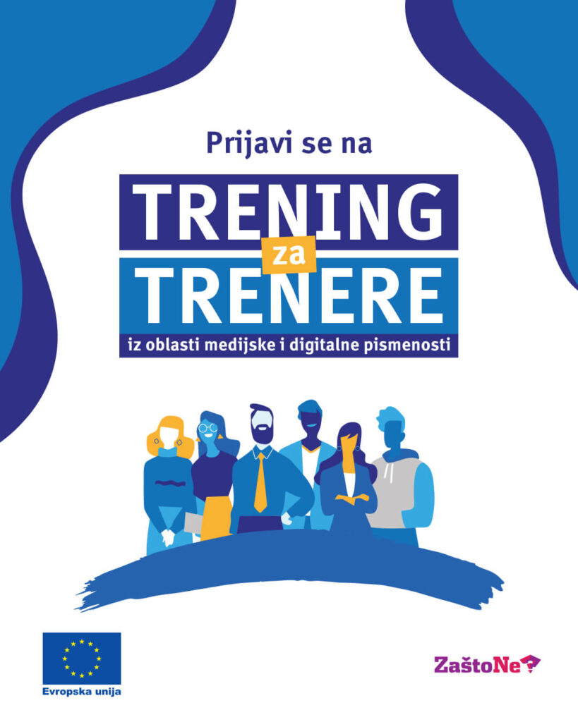 Trening za trenere organizuje Udruženje građana i građanki “Zašto ne” u sklopu projekta Evropske unije “Podizanje svijesti i znanja o medijskoj pismenosti među mladima u BiH”.