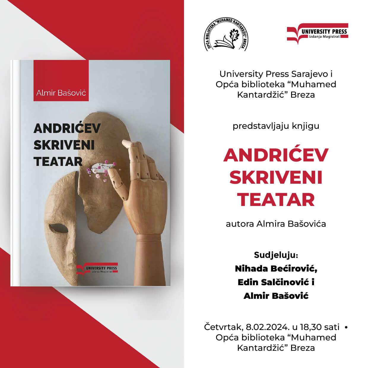 Promocija knjige “Andrićev skriveni teatar” autora Almira Bašovića bit će održana u Općoj biblioteci “Muhamed Kantardžić” Breza u četvrtak, 8. februara, u 18:30 sati.