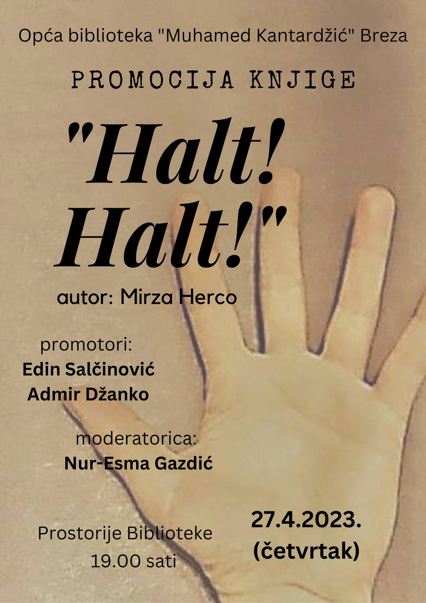 Opća biblioteka “Muhamed Kantardžić” Breza organizuje promociju knjige Halt! Halt! našeg sugrađanina Mirze Herce, te nastavlja obilježavanje Svjetskog dana knjige.