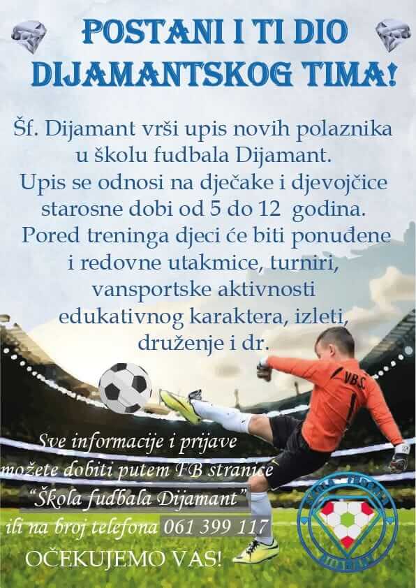 Sve informacije i prijave možete dobiti putem FB stranice ŠF “Dijamant” Breza ili na broj telefona 061/399-117.