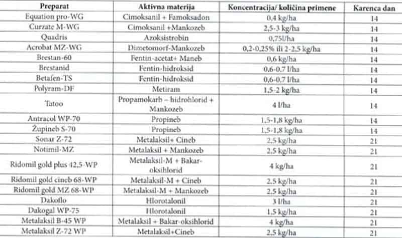 Trenutno se na raspolaganju nalazi veliki broj izuzetno efikasnih preparata za uspešno suzbijanje plamenjače krompira (Phytophthorainfestans).
