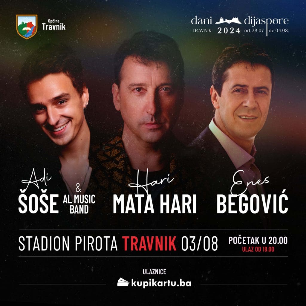 Na Trećim “Danima Dijaspore” muzički spektakl na stadionu Pirota 3. avgusta održat će Hari Mata Hari, Enes Begović i Adi Šoše.