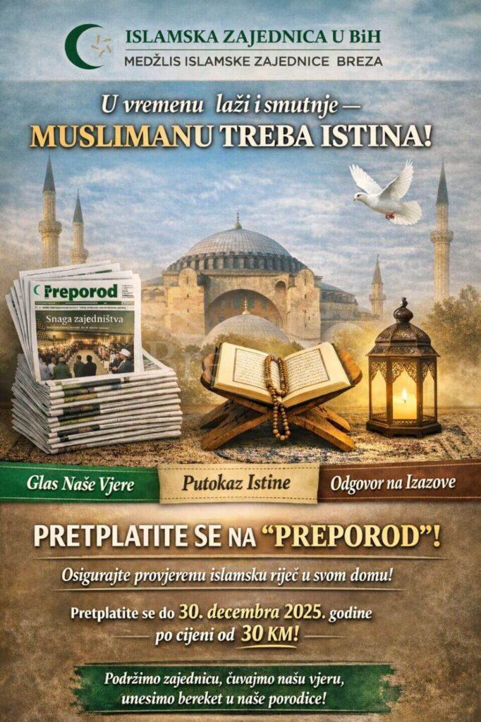 Pozivaju se vjernici da se pretplate na „Preporod“ do 30. decembra 2025. godine, po cijeni od 30 KM, te na taj način osiguraju da provjerena islamska riječ redovno stiže u njihove domove.