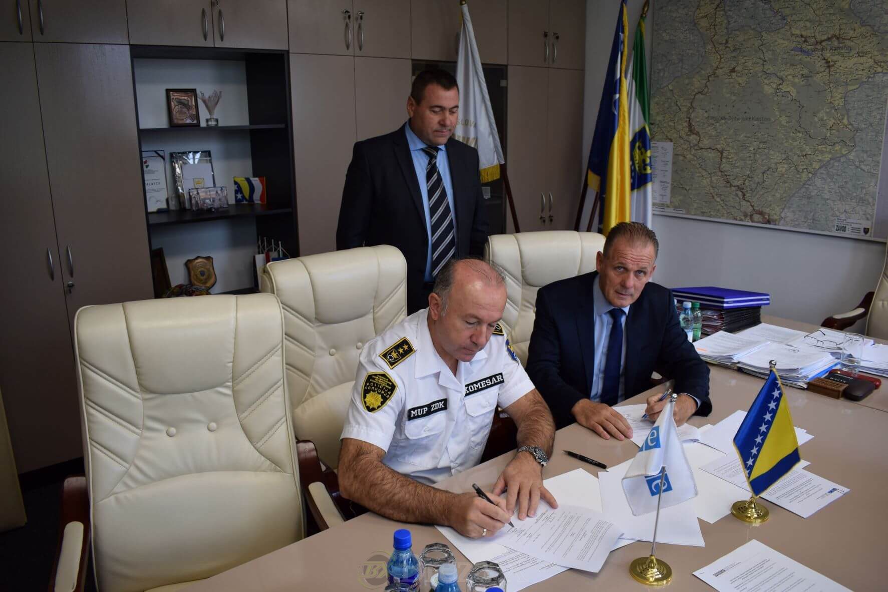 Potpisivanju protokola su prisustvovali Andrei Sarban, projektni menadžer Misije OSCE-a u BiH i Jasmin Selimović, nacionalni projektni službenik dok su policijski komesar Uprave policije Šišić Rusmir i ministar unutrašnjih poslova Zeničko-dobojskog kantona Dario Pekić potpisali protokol.