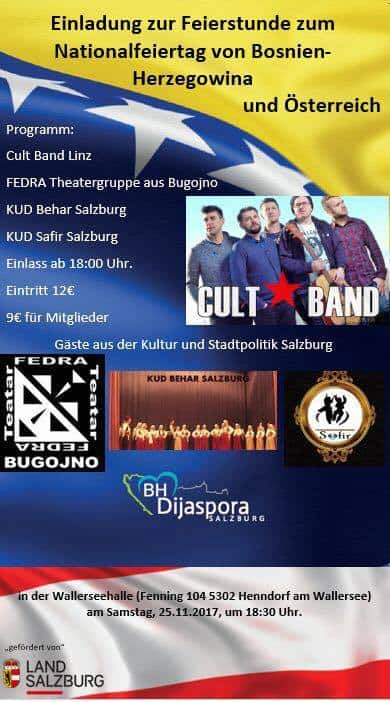 Naime, 25. novembra u u Wallerseehalle u Henndorfu kod Salzburga “Cult Band” imat će čast da zabavlja goste i zvanice na proslavi povodom obilježavanja Dana državnosti BiH, koju organizira BH Dijaspora Salzburg.