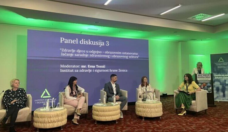 Panel „Zdravlje djece u odgojno-obrazovnim ustanovama: Jačanje saradnje zdravstvenog i obrazovnog sektora“ moderirala je mr. Erna Terzić, a u diskusiji su učestvovali predstavnici obrazovnih institucija, pedijatrije, javnog zdravstva i kantonalnih ministarstava: